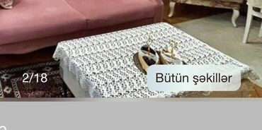 - Jurnal masası: düzbucaqlı forma, ağ rəngdə, üzərində krujeva örtük (şəkildə).