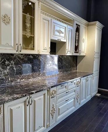 Klassik üslubda mebel dəsti - Mətbəx garnituru: Krem rəngli, oyma