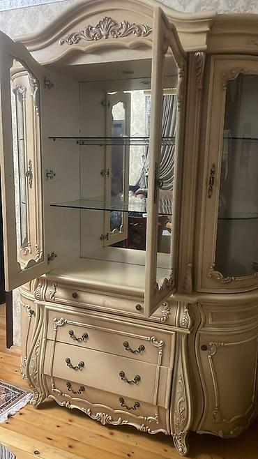 Klassik üslubda vitrin-bufet - Rəng: krem/bej, qızılı relyef