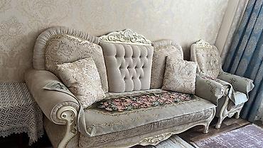 - Tərkibi: 3 nəfərlik divan + 2 ədəd iri kreslo + dekorativ yastıqlar