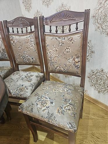 Klassik interyerlərlə harmoniyada olan, möhkəm ağac konstruksiyalı zərif masa-stul dəsti.