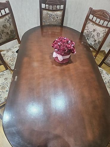 - Komplekt: 1 ədəd oval yemək masası + 6 ədəd stul