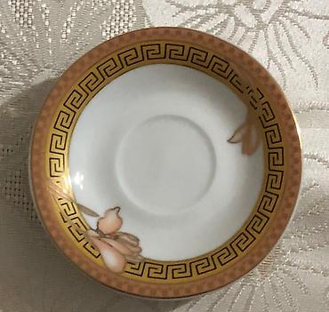 Porcelan qəhvə dəsti – 6 fincan və 6 nəlbəki - Material: nazik porcelan - Dizayn: fincanların və nəlbəkilərin üzərində klassik tematik rəsm kompozisiyaları və zərif qızılı ornamentlər - Qızılı kən...
