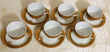 - Məhsul: 6 nəfərlik çay/qəhvə fincan dəsti - Tərkibi: 6 ədəd fincan, 6 ədəd boşqabcıq (nəlbəki) - Material: Porcelan - Dizayn: Hər fincan və nəlbəkidə klassik üslubda rəngli tematik rəsmlər və ətr...
