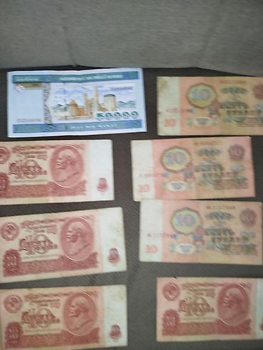 Kolleksiya üçün qədim kağız pullar və dövlət qiymətli kağızı dəsti - Azərbaycan Milli Bankı 1 manat (köhnə emissiya, AZM nominallı). - SSRİ dövrünə aid müxtəlif kağız pullar: - 3 rubl (iki fərql...
