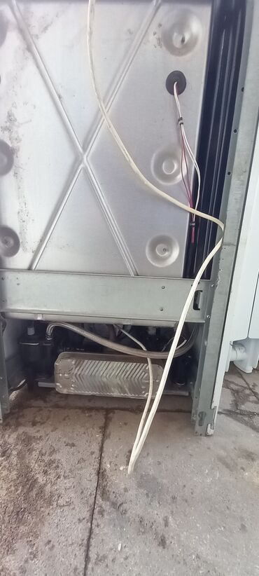 - Kombinin arxa hissəsində paslanmayan platen tipli istilik dəyişdiricisi, sirkulyasiya nasosu və bağlantı fitinqləri görünür.