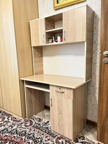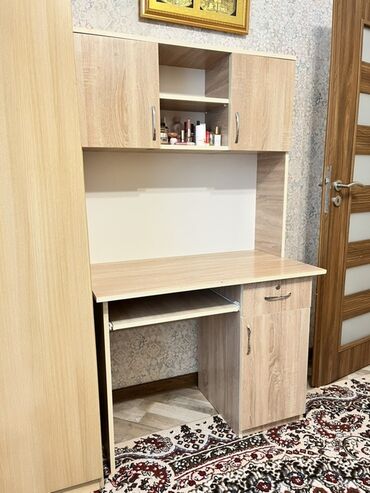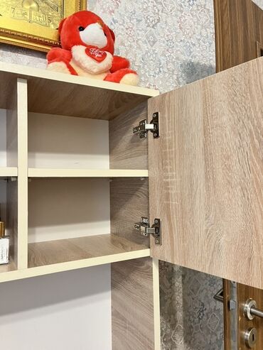 - Üst hissə: 2 qapılı asma şkaf, ortada açıq rəf (kosmetika, kitab, aksesuarlar üçün)