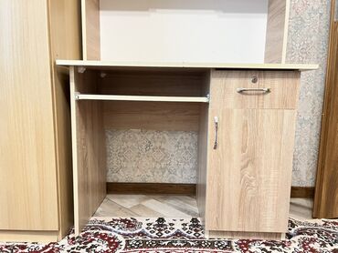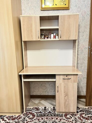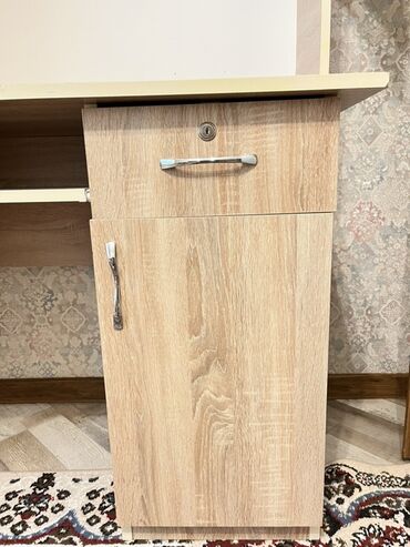 - Alt hissə: sağda kilid hissəsi olan kiçik siyirmə (çəkməce) və onun altında qapılı şkaf bölməsi