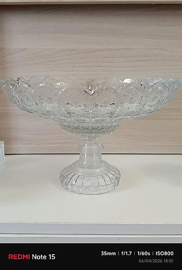 • Şüşə qab – ayaqlı meyvə/gülab qabı - Material: qalın, şəffaf şüşə -