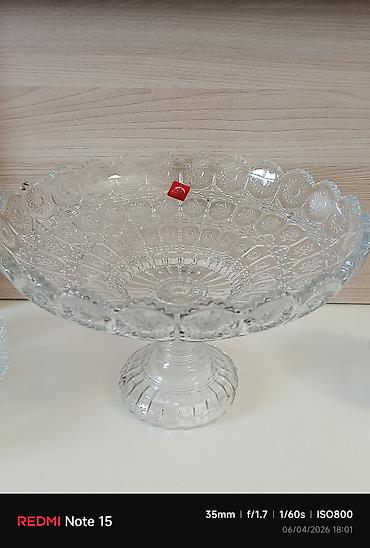 Şüşə ayaqlı meyvə/gülqabı - Material: şəffaf, qalın şüşə - Dizayn