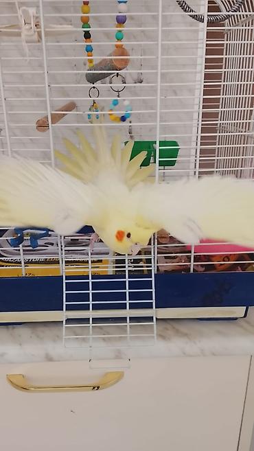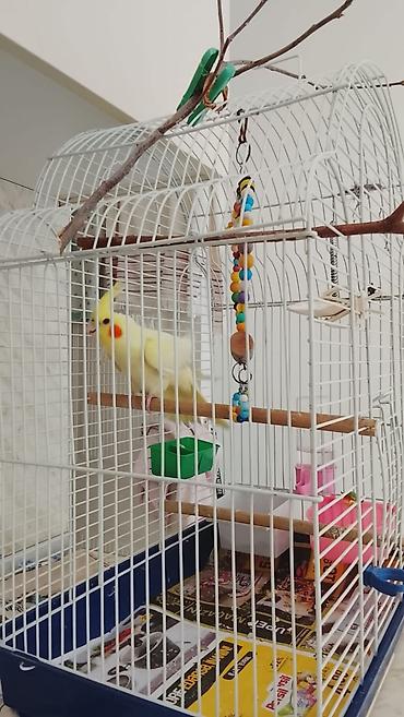 - Sarı rəngli, yanaqlarında narıncı ləkələri olan korella (cockatiel)