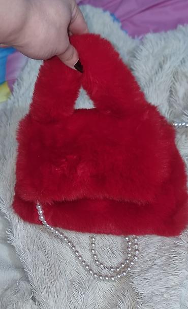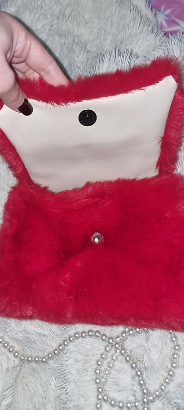 TƏZƏDİR Qırmızı süni kürklü əl çantası