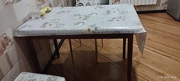 - Yemək masası: Düzbucaqlı, dörd ayaqlı, taxta konstruksiya. Üstündə naxışlı süfrə və şəffaf qoruyucu örtük var. Ailə yeməkləri və gündəlik istifadə üçün rahat ölçü.