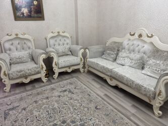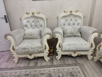 - Material: yumşaq parça üzlük, naxışlı və çiçək ornamentli oturacaq yastıqları