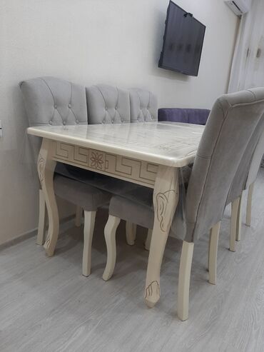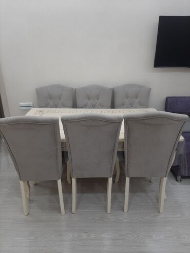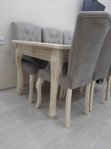 Yemək otağı üçün zərif masa və 6 ədəd stul dəsti.