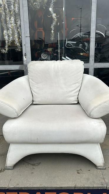 Mebel: Yumşaq kreslo - Rəng: südlü ağ (korpus və qollar) + bej (oturacaq və arxa hissə) - Material: kombinə örtük — yanlar və baza dəri/eko-dəri, oturacaq və arxa hissə parça - Dizayn: geniş, qalı...