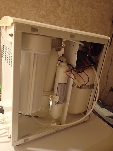 - Korpus daxilində çoxmərhələli filtr bloku, osmos membranı, nasos və daxili su çəni.