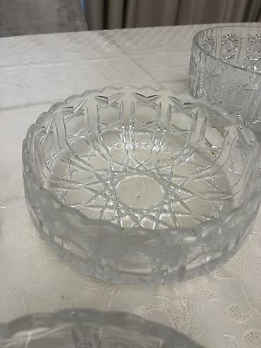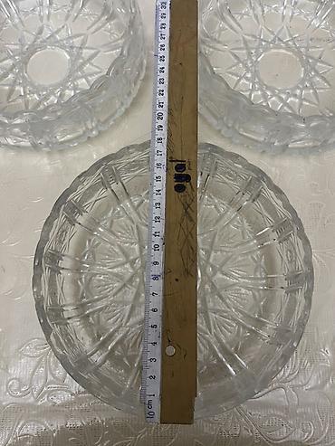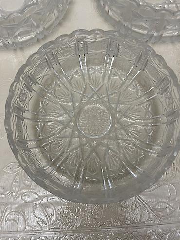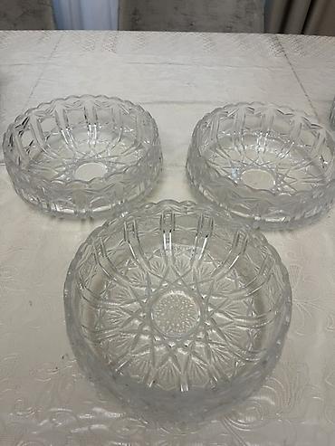 Kəsimli şüşə salat qabları – 3 ədəd dəst - Material: qalın kəsimli