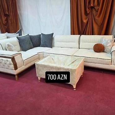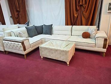 Künc divan dəsti - Model: L formalı künc divan, müasir klassik dizayn - Ölçü: standart künc ölçülü (fotolardakı kimi L istiqaməti dəyişdirilə bilər) - Material: yumşaq parça/velur tipli üzlük, dek...