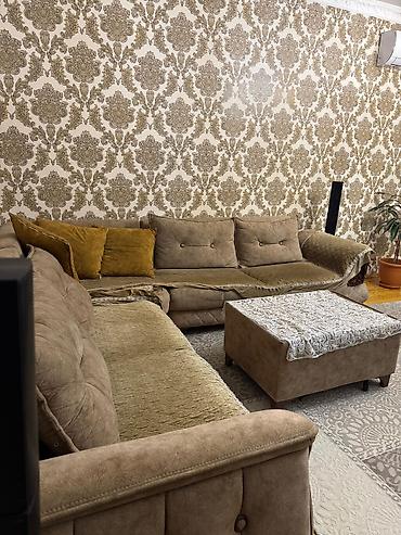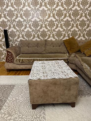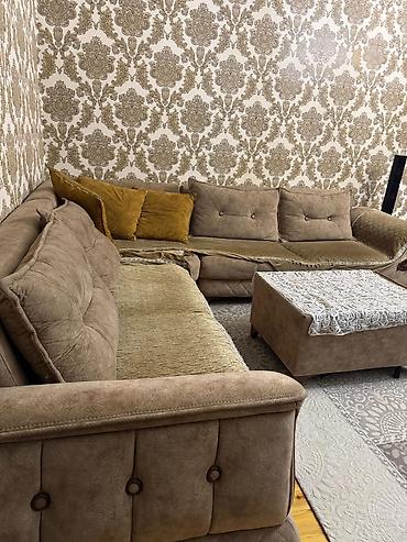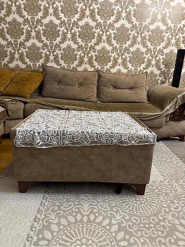 - Komplekt: L formalı geniş künc divan (2 hissəli modul), uyğun puf/çay masası.