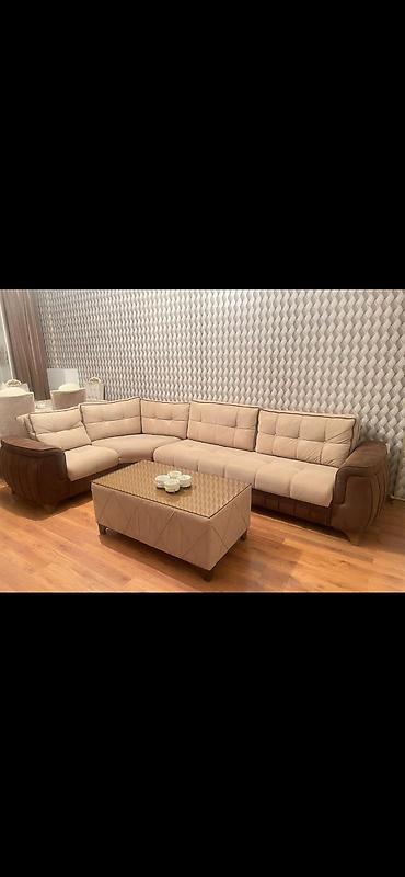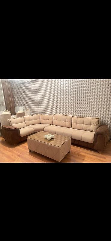 Yaxşı vəziyyətdə künc divan satılır. Rəngi açıq bejdir, rahat və genişdir. Açılıb yataq formasına düşür, həm qonaq otağı, həm də gündəlik istifadə üçün uyğundur. Ölçüsü: 2x3 metr. Divanda normal is...