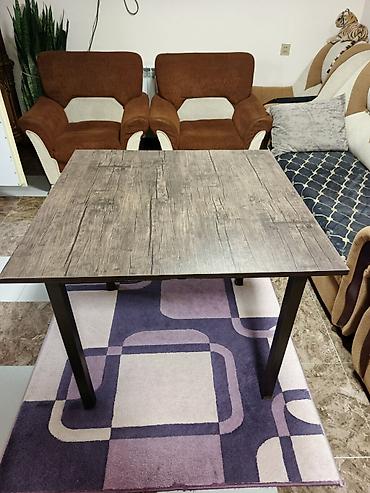 - Ölçü təxmini: 80–90 sm kvadrat üst (şəkillərə əsasən dörd nəfər rahat əyləşə bilər).