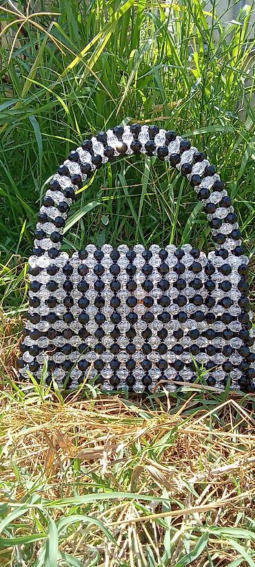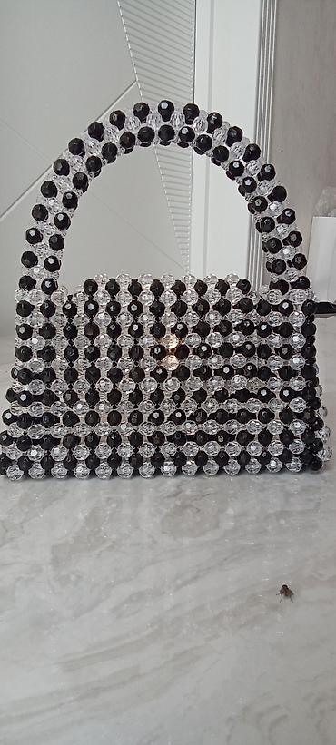 Bəzəkli muncuqlardan hazırlanmış əl çantası - Rəng: ağ/şəffaf, işıqda parıldayan kristal effektli muncuqlar - Material: sıx şəkildə hörülmüş plastik muncuqlar, möhkəm konstruksiya - Dizayn: üstünd...