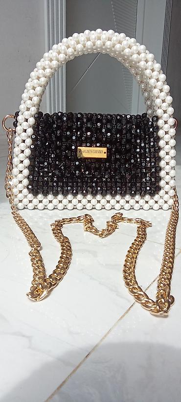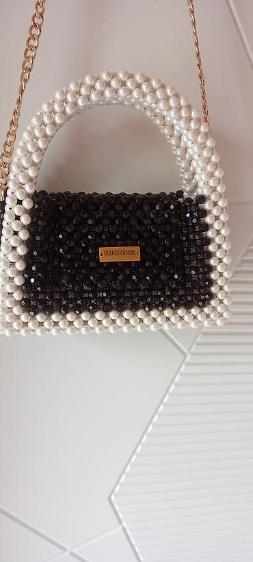 - Dizayn: Qara parıldayan muncuq korpus, kənar və qulplarda ağ mirvari effektli muncuqlar.