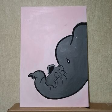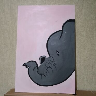 - Kompozisiya: sağdan görünüşlü ana fil, xortumunda balasını qucaqlayır; minimalistik, yumşaq xətlər və emosional baxış