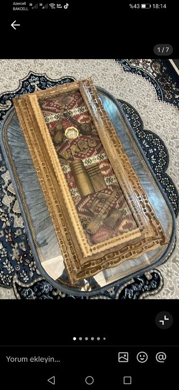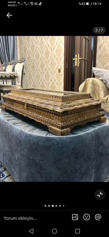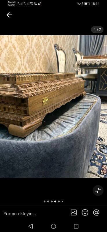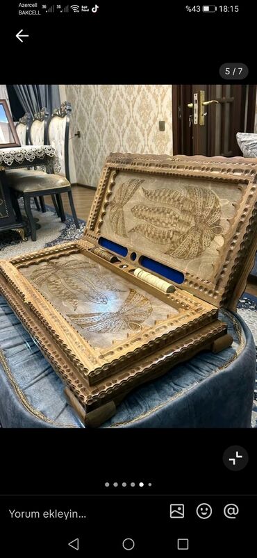 Ağacdan hazırlanmış, əl oyma naxışlı tavla dəsti. - Material: bərk