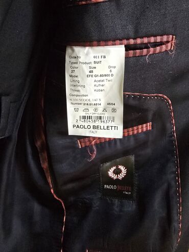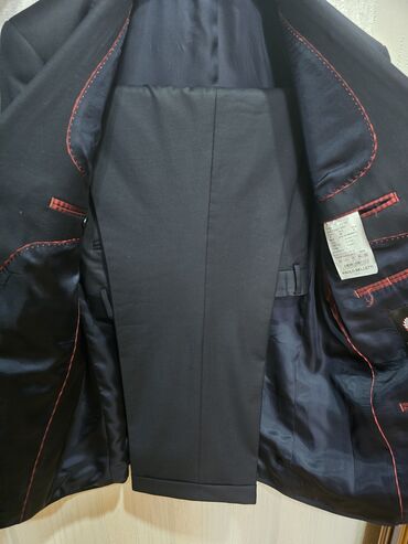 Geyim sifarişlə yeni alınıb gətirilib və sadəcə 44-0 ölçüsü uyğun gəlmədiyindən satılır. İki parçalı kişi kostyumu – qrafit boz rəngdə - Üst: ikicərgəli düymələmə, geniş haşiyəli (peak lapel) yaxa,...