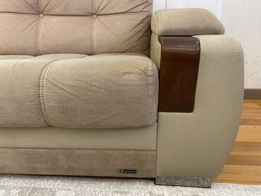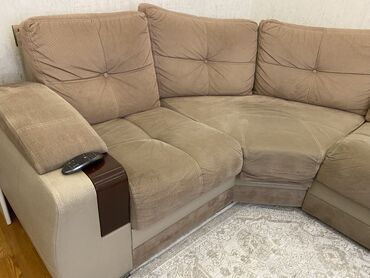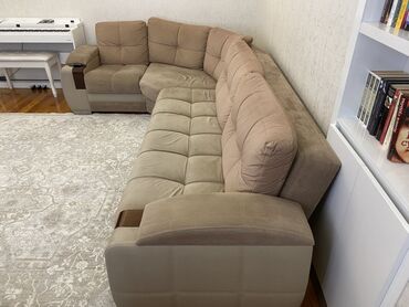- Forma: L‑şəkilli künc divanı, üç hissəli oturacaq bloku və yumşaq bel yastıqları