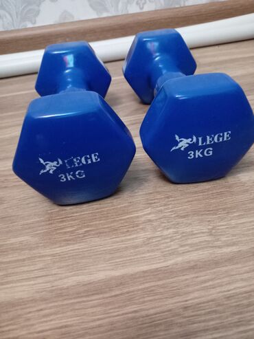 Qutuda: 2 ədəd 3 kq dumbbell. Marka və çəki işarələri korpusun üzərində: “LEGE 3KG”.