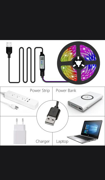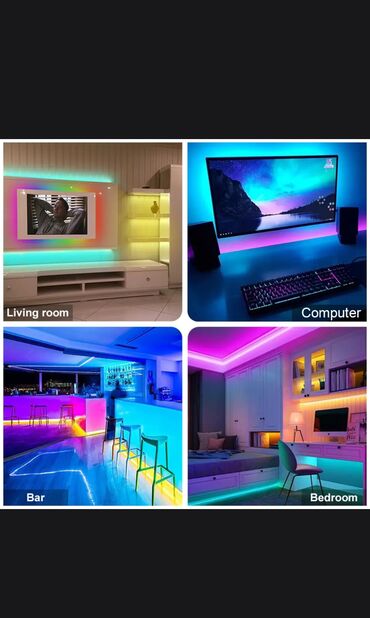 RGB Led işıq 5 metr Yataq otağı,Oyun masası,Tv arxası üçün LED iŞıqlar, 4.88-5 metr ölçüsündədir. TELEFON vasitəsilə idarə edilə bilər,eyni zamanda pultuda var. Asanlıqla Tv və ya mebelə yapışdırm...