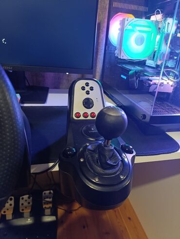 - Ayrı shifter modulu: H‑pattern 6+R mexaniki sürətlər qutusu, üst paneldə D‑pad və əlavə funksional düymələr; stol kənarına bərkidilən möhkəm qısqac sistemi.