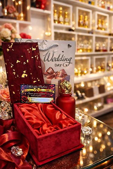 - Qızılı naxışlı, atlas daxili ilə məxmər hədiyyə qutusu (rəng seçimləri: qızılı və bordo)