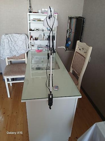 Manikür masası və aksesuarları İşlənmiş - Ağ rəngli, şüşə səthli manikür masası – geniş iş sahəsi, rahat ayaqaltı boşluq - Tənzimlənən qolcuqlu masa lampası – işıq axınını asan yönləndirmə - UV/LED...