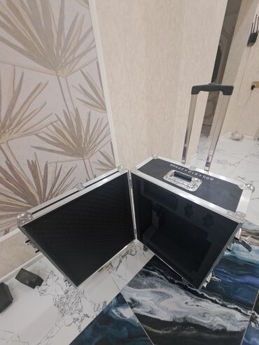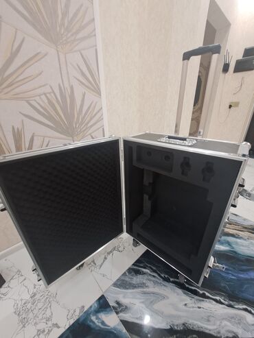 - Təkərli, teleskopik dəstəklə çəkilə bilən, içi köpük ilə qorunan alüminium künclü sərt daşıma çamadanı. Daxili köpük forması alət/cihaz yerləşdirməyə uyğundur, qapıda yumşaq yumruluq (egg-crate) qoruyucu süngər mövcuddur. Yanlarda kilidlənən bağlayıcılar və dört təkər.