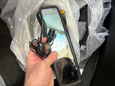 - Arxa kamera üçün güzgü-tip monitor dəsti: salon güzgüsünə bərkidilən ekran, toxunma düymələri (menyu/işıqlandırma və s.), kabel və qoşulma naqilləri ilə.