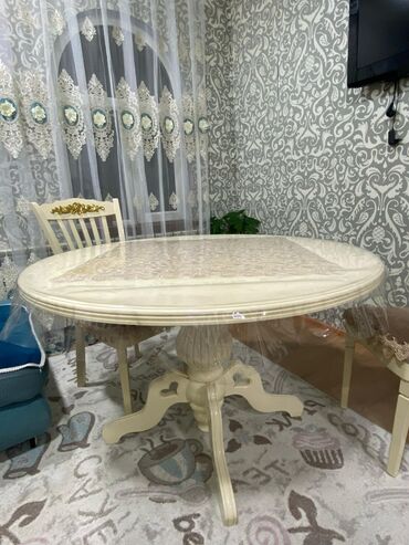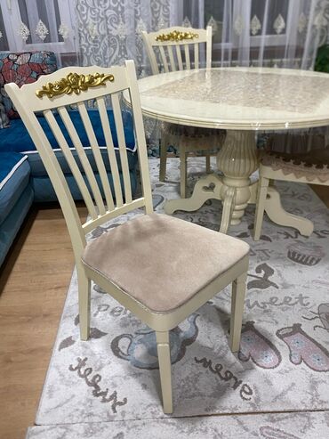 Yemək otağı üçün masa–stul dəstləri - Komplekt: 1 masa + 6 stul - Stil: Klassik/eleqant, dekorativ oyma detallar və kapitone arxa dayaqları - Rənglər: Bej və boz tonlarda müxtəlif variantlar - Mas...