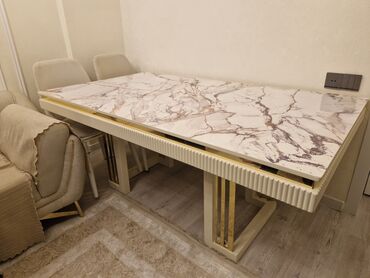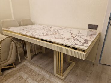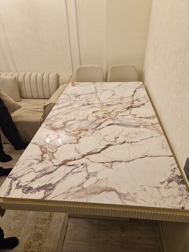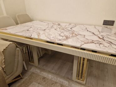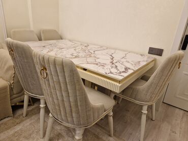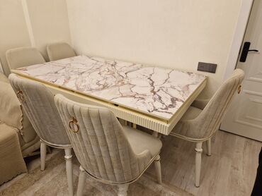Modern yemək dəsti – 1 masa + 4 oturacaq - Masa: düzbucaqlı forma, taxta teksturalı üst səth; dekorativ “Z” formalı qara metal ayaqlar. Səth rahatlıqla silinir, gündəlik istifadə üçün praktikdir. ...