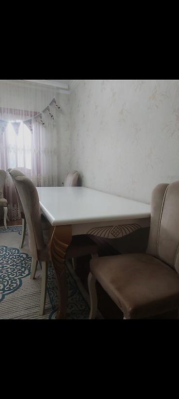- 6 ədəd yumşaq oturacaqlı stul (bej rəng, arxası relyefli).