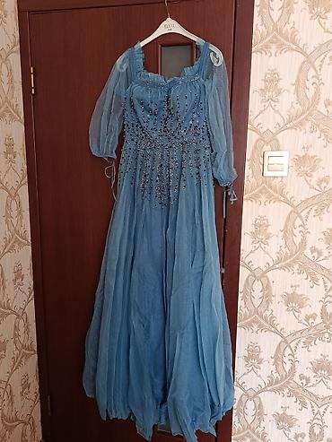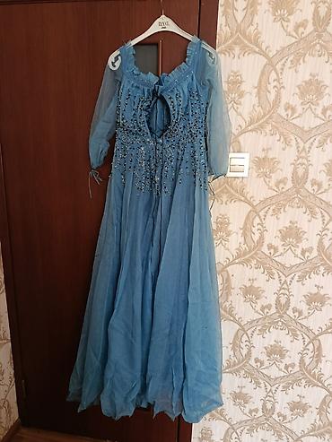 Mavi rəngli uzun ziyafət/libas - Model: Uzun, şifon fakturalı, yüngül