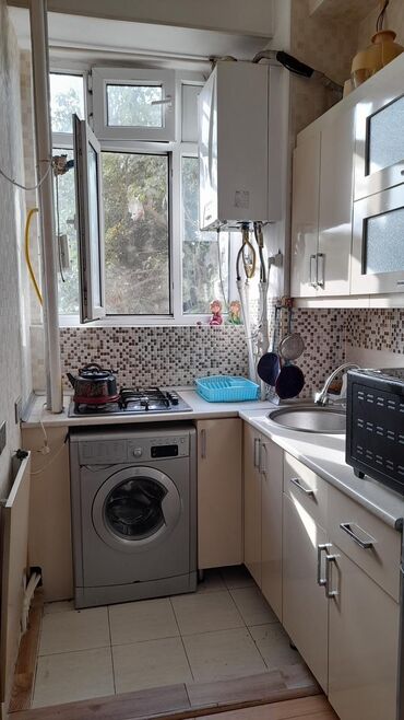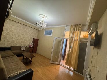 Şəhər mənzili – geniş və işıqlı - Plan: ayrı qonaq otağı və yataq otağı - İnteryer: açıq tonlarda dekor, alçaq-karnizli tavan və LED spot işıqlandırma - Döşəmə: iri ölçülü mərmər naxışlı kafel - M...
