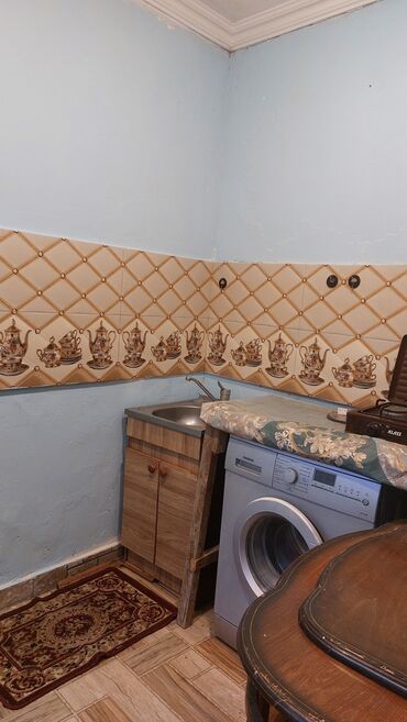 - Mətbəx: soyuducu, paltaryuyan maşın (Siemens), iki gözlü portativ qaz plitəsi, mətbəx dolabı və lavabo, yemək masası və stullar.