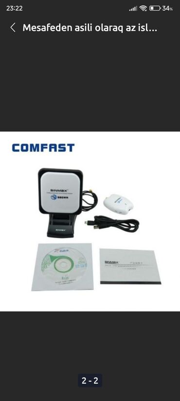 Pulsuz çatdırılmaMesafeden asili olaraq az islenmis wi- fi dalqa tutan.yalnız kompüterə və noutbuka qoşmaq olur