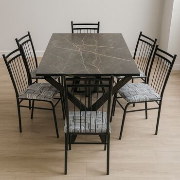 Masa – modern dizaynlı yemək/iş masası - Üst hissə: Açıq ağac teksturasında laminə/taxta görünüşlü səth; hamar və təmizlənməsi asan. - Ölçü (təxmini): Şəkillərdə kvadrat‑yaxın düzbucaqlı format; 4...