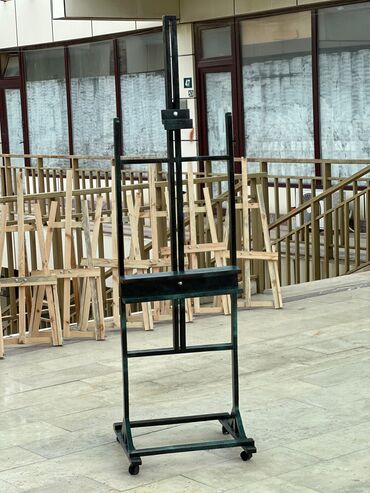 Taxta molbertlər – studiya, kurs, sərgi və tədbirlər üçün - Material: təbii ağac (şam). Zımparalanmış səth, səliqəli birləşmələr, metal bərkidicilər. - Quruluş: üçayaqlı A-forma. Ön şin kətan/tabl...Giriş•Qeydiyyat
