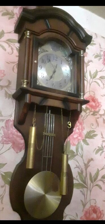 Məhsul: Mexaniki divar saatı (pendulumlu) bir az işleyir dayanır. Təsvir: - Taxta korpuslu, ön hissəsi şüşə qapaqlı klassik divar saatı. - Aşağı hissədə pendulum pəncərəsi var. - Siferblat səkkizg...