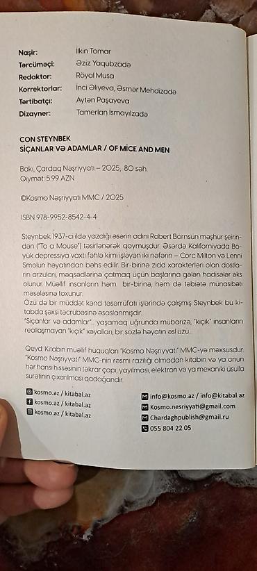 Məhsul: Kitab – “Siçanlar və Adamlar” (Con Steynbek) Nəşriyyat: Çardağ